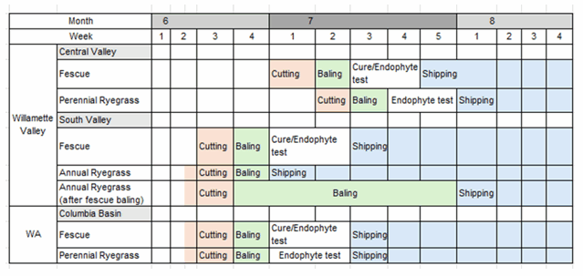 オレゴン州およびワシントン州の一般的な収穫スケジュールは、以下となります。